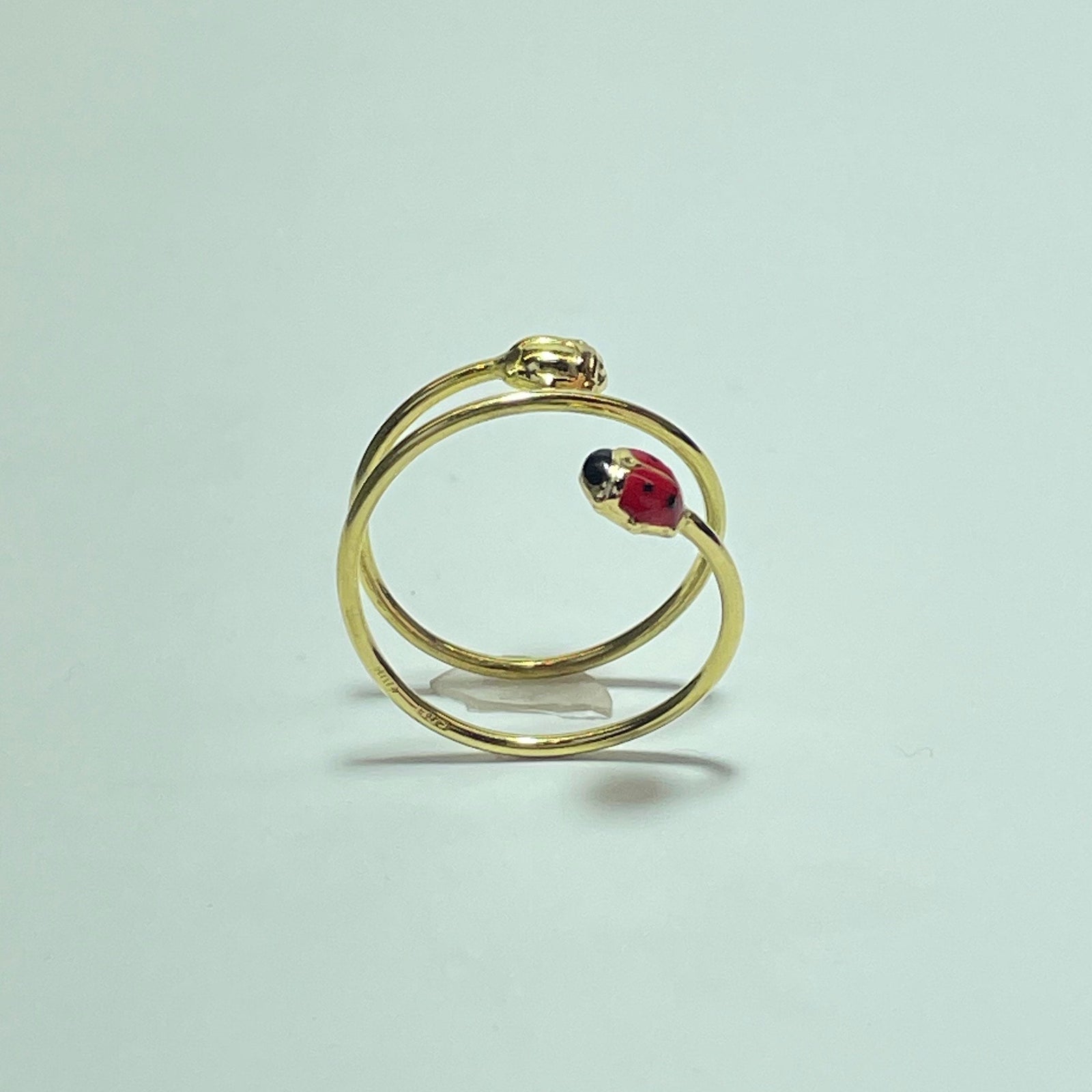 Apportez une touche d’originalité et de couleur à votre style avec cette délicate bague en or jaune 18 carats (750/1000). Son design fin et moderne est sublimé par deux petites perles émaillées aux couleurs vives (rouge et noir), créant un contraste élégant et raffiné.