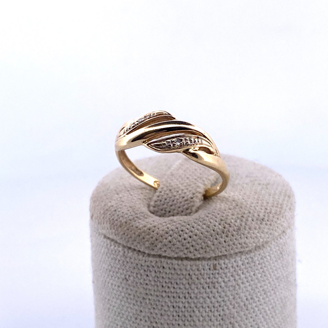 Une bague délicate en or jaune 18 carats (750/1000), d’un poids de 2,03 g, au design élégant et fluide. Ses lignes entrelacées sont rehaussées de petits éclats scintillants, apportant une touche de raffinement et de modernité.