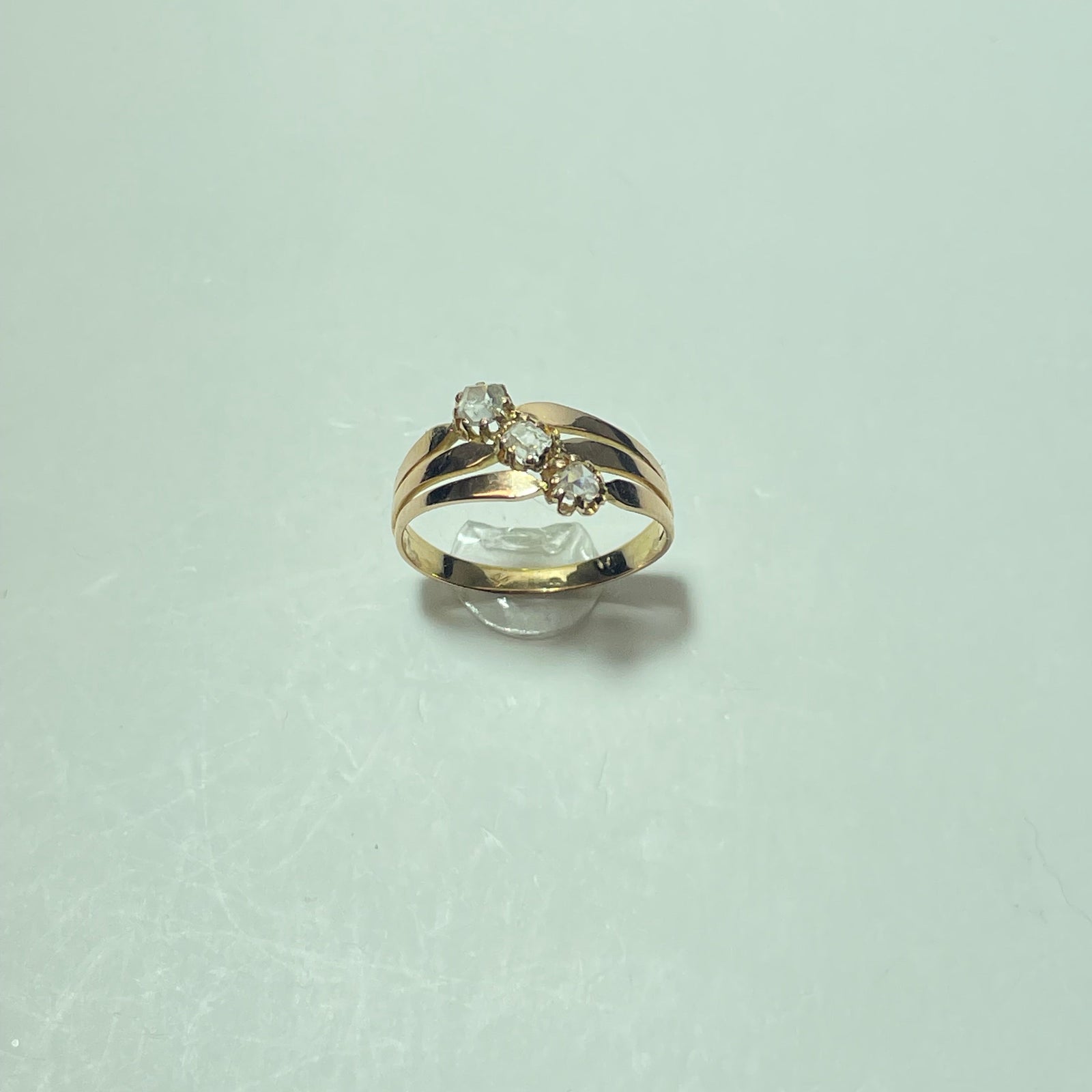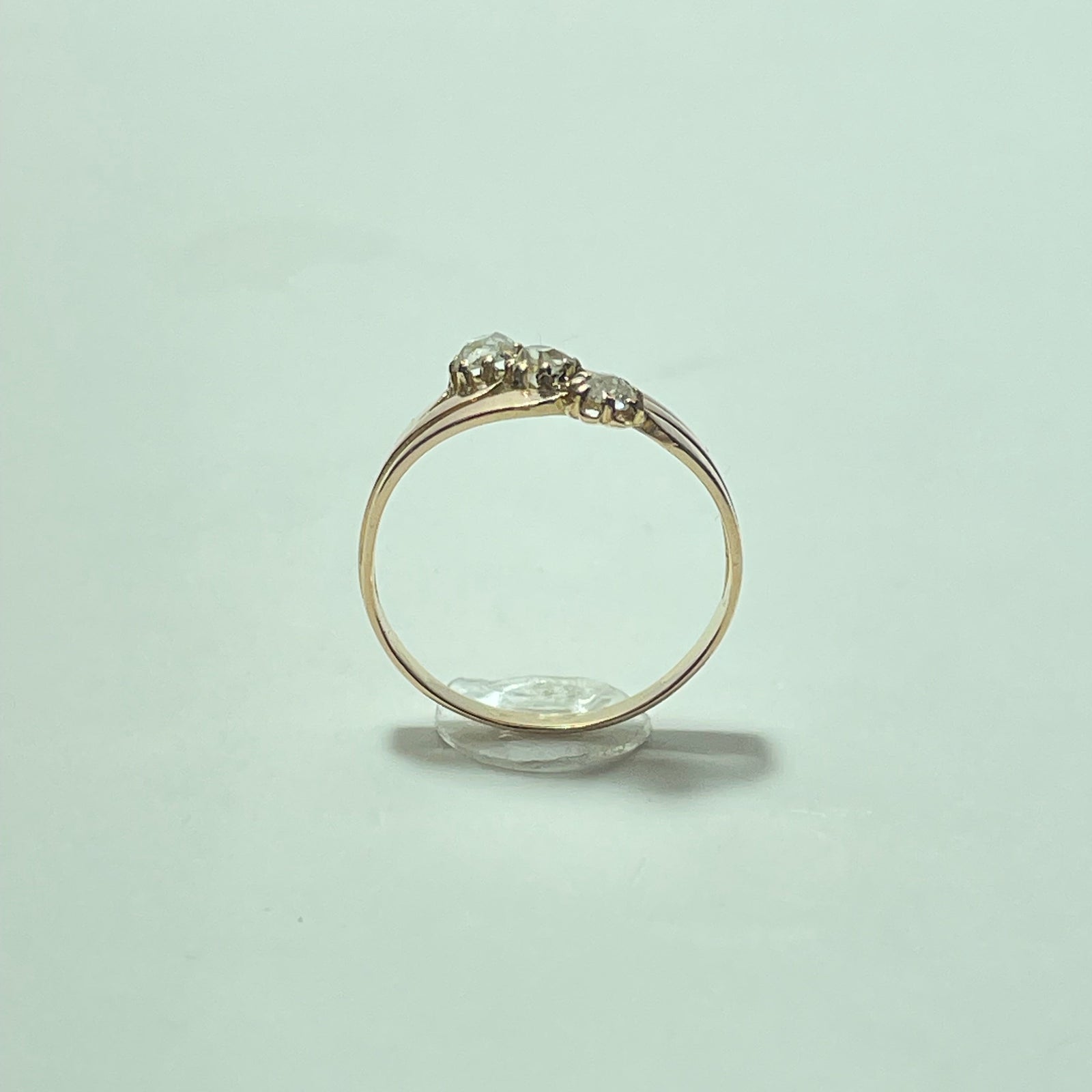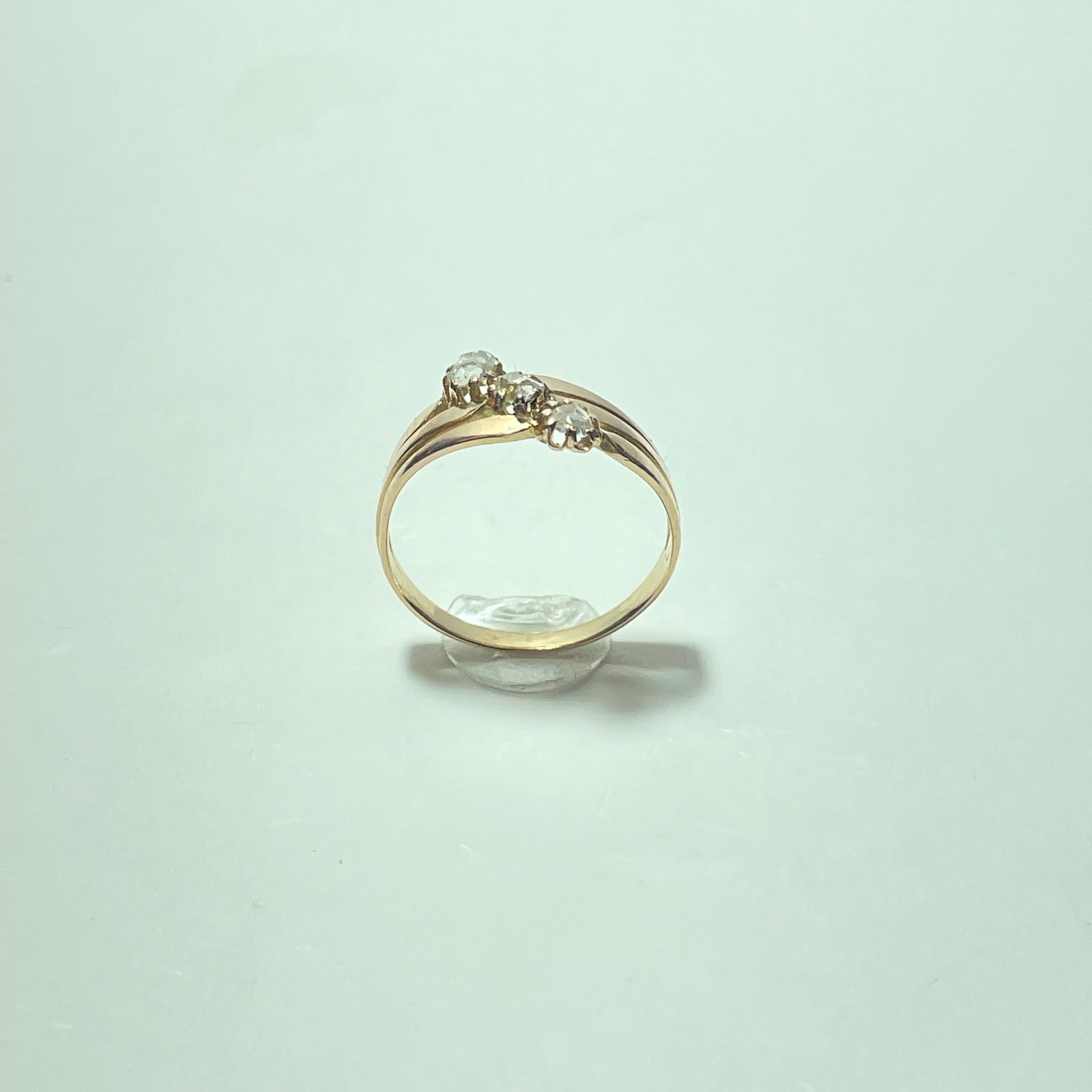 Le modèle présente une monture ajourée et légèrement structurée, mettant en valeur une ligne centrale composée de trois diamants soigneusement serties en griffes.