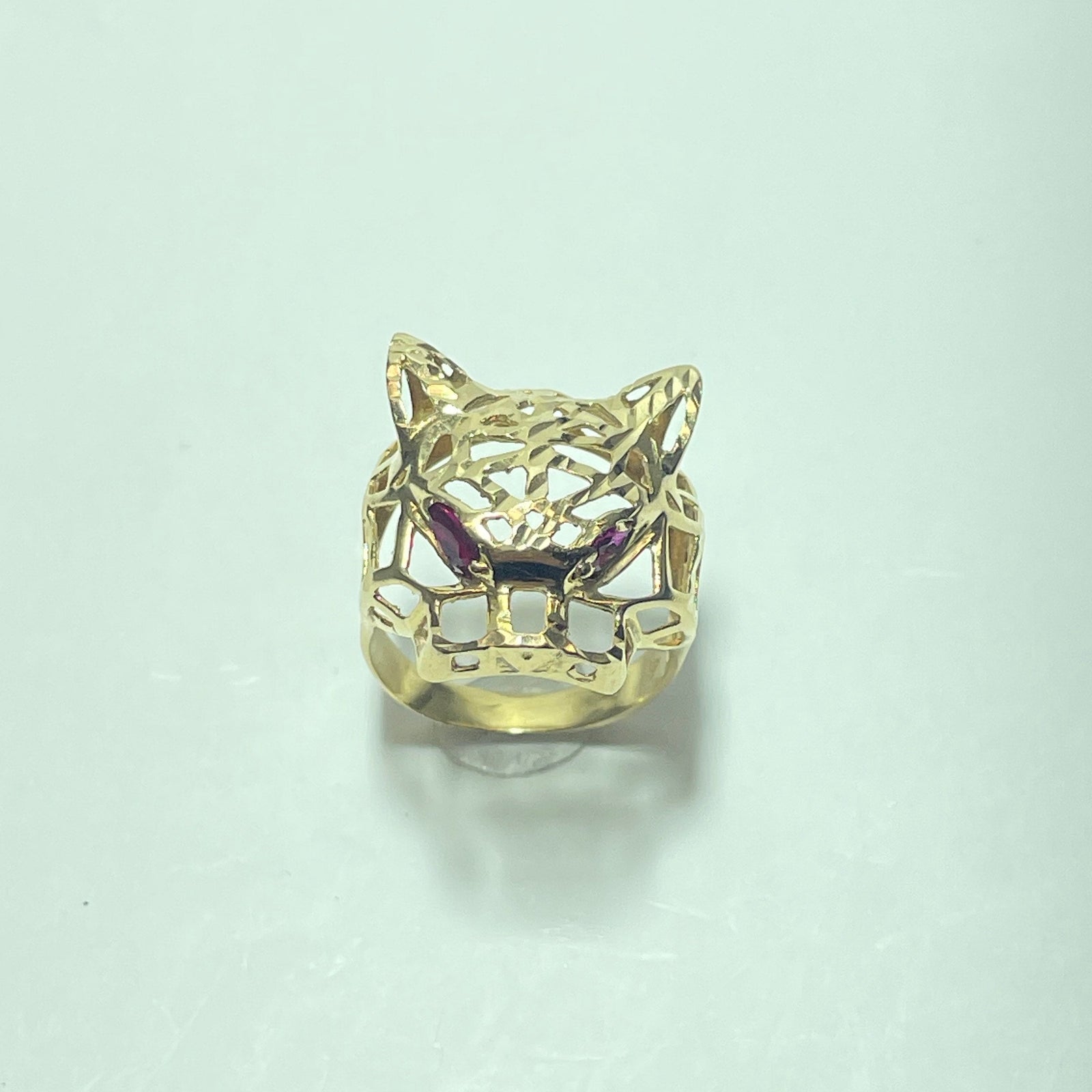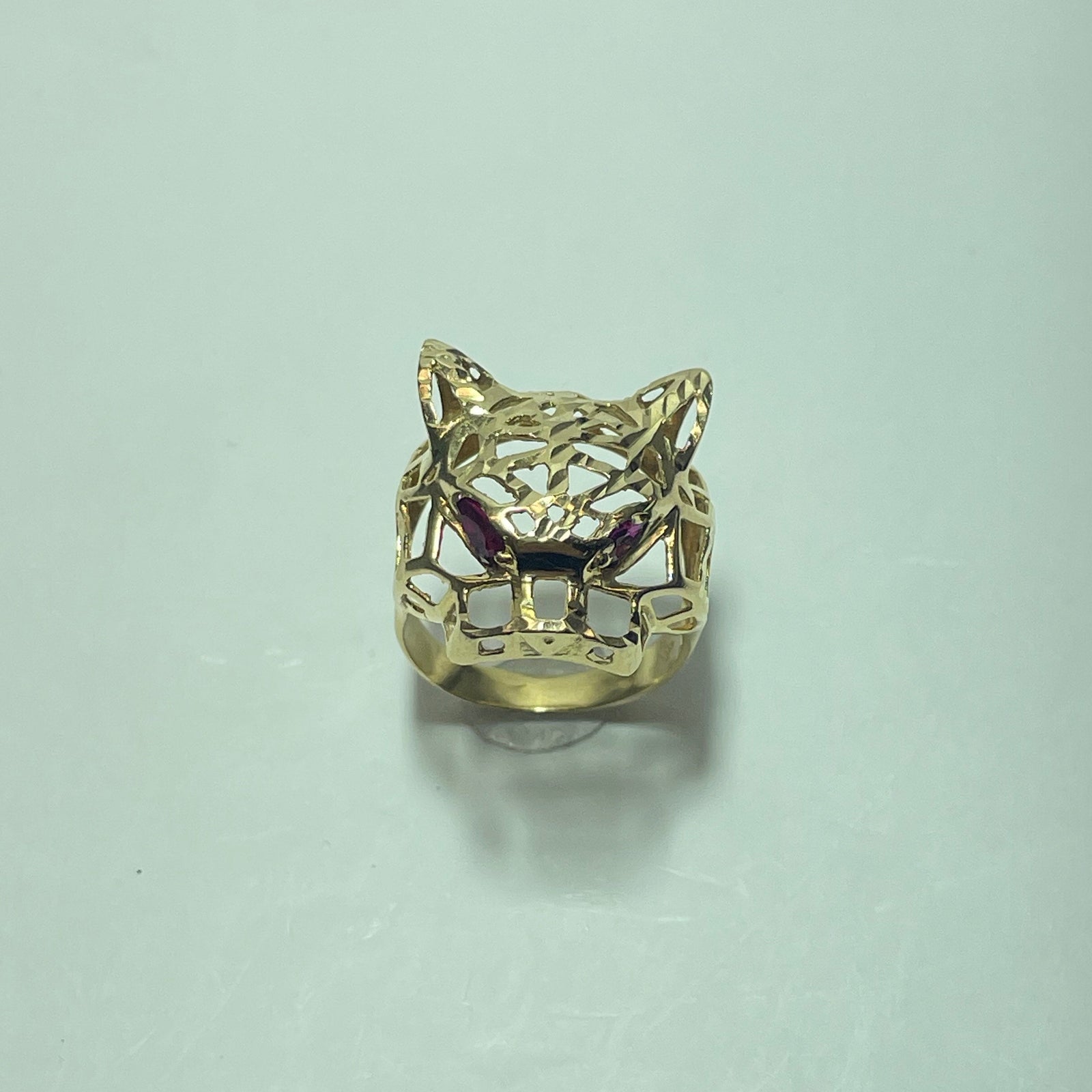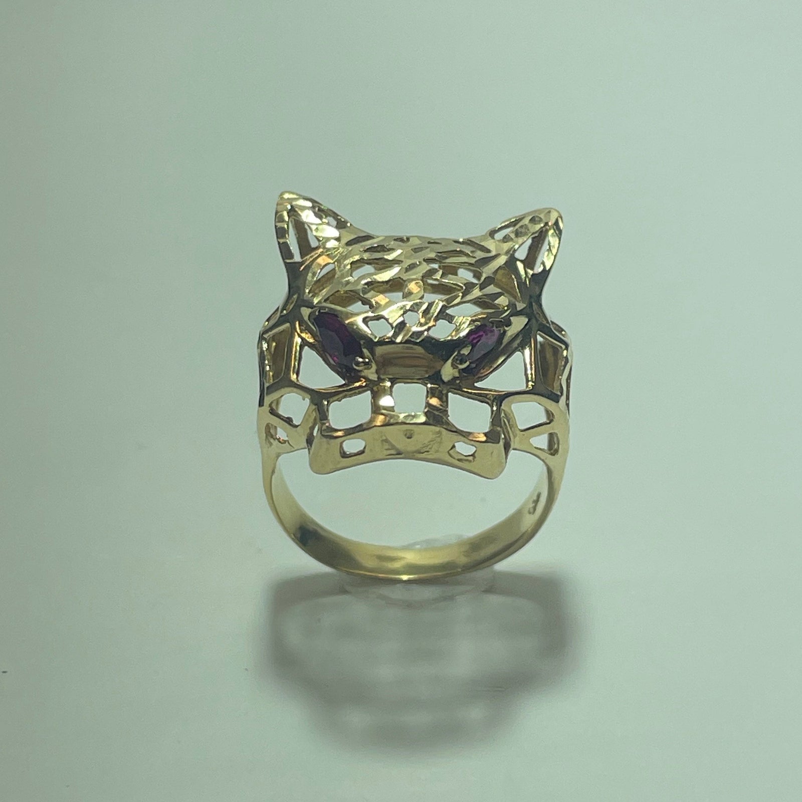 Avec un poids de 5,28 g, cette bague offre un parfait équilibre entre présence visuelle et confort au porter. Les détails minutieux de la monture et les yeux sertis de pierres violettes, apportent profondeur et caractère à l’ensemble, faisant de cette pièce un bijou unique et expressif.