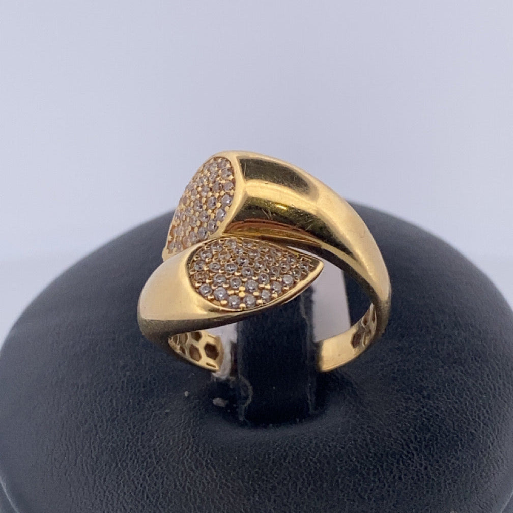 Sublimez votre main avec cette bague en or jaune 18 carats (750/1000), au design audacieux et raffiné. Son motif sculptural est rehaussé d’un pavage scintillant qui capte magnifiquement la lumière, apportant une touche d’élégance et de modernité à votre style.