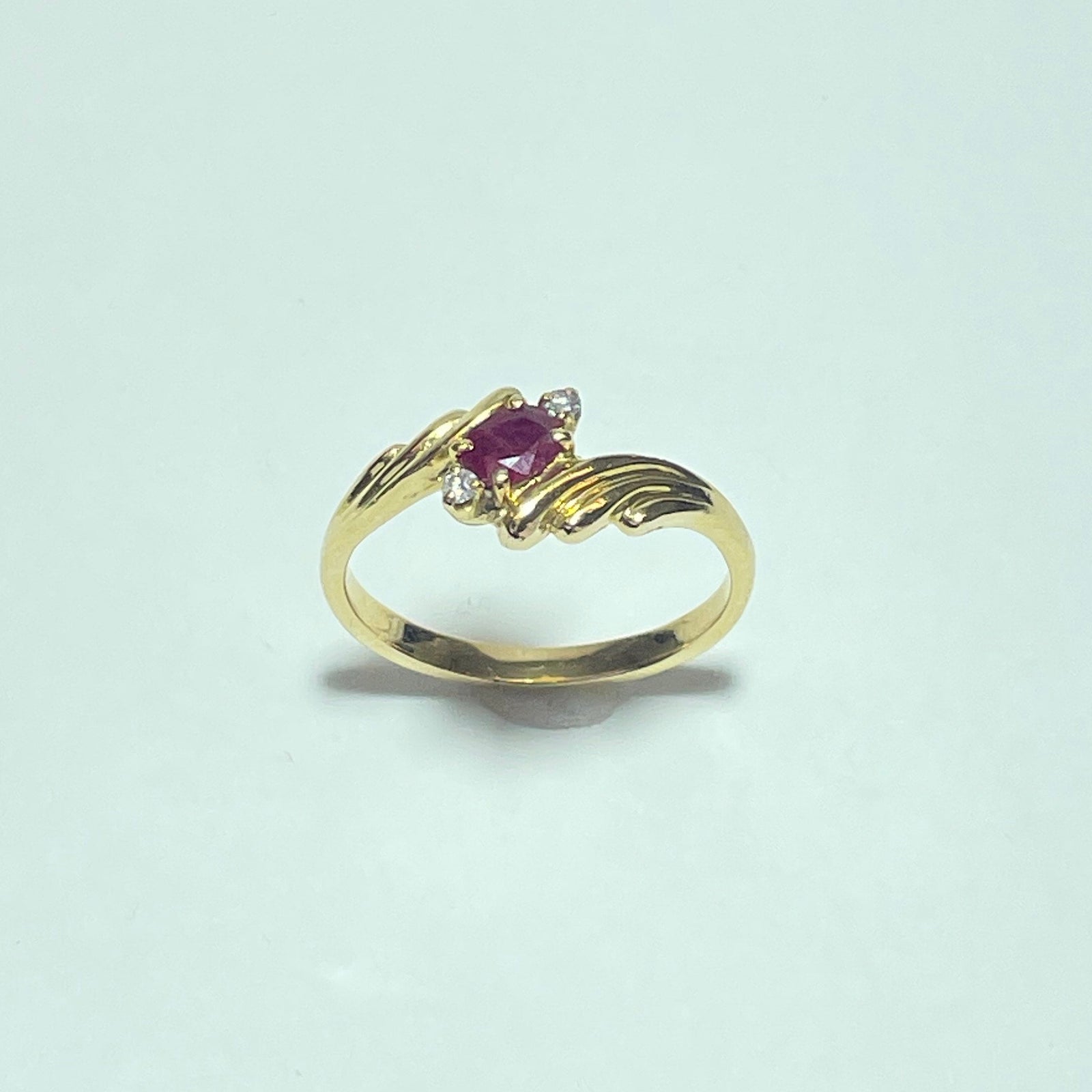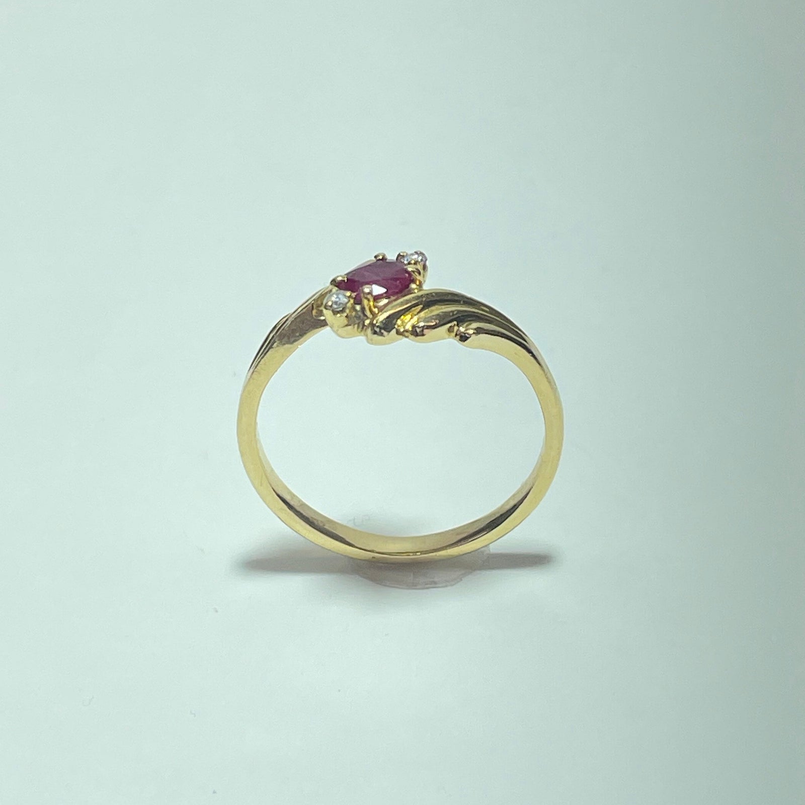 Type : Bague sertie d'une pierre rubis rouge et 2 diamants