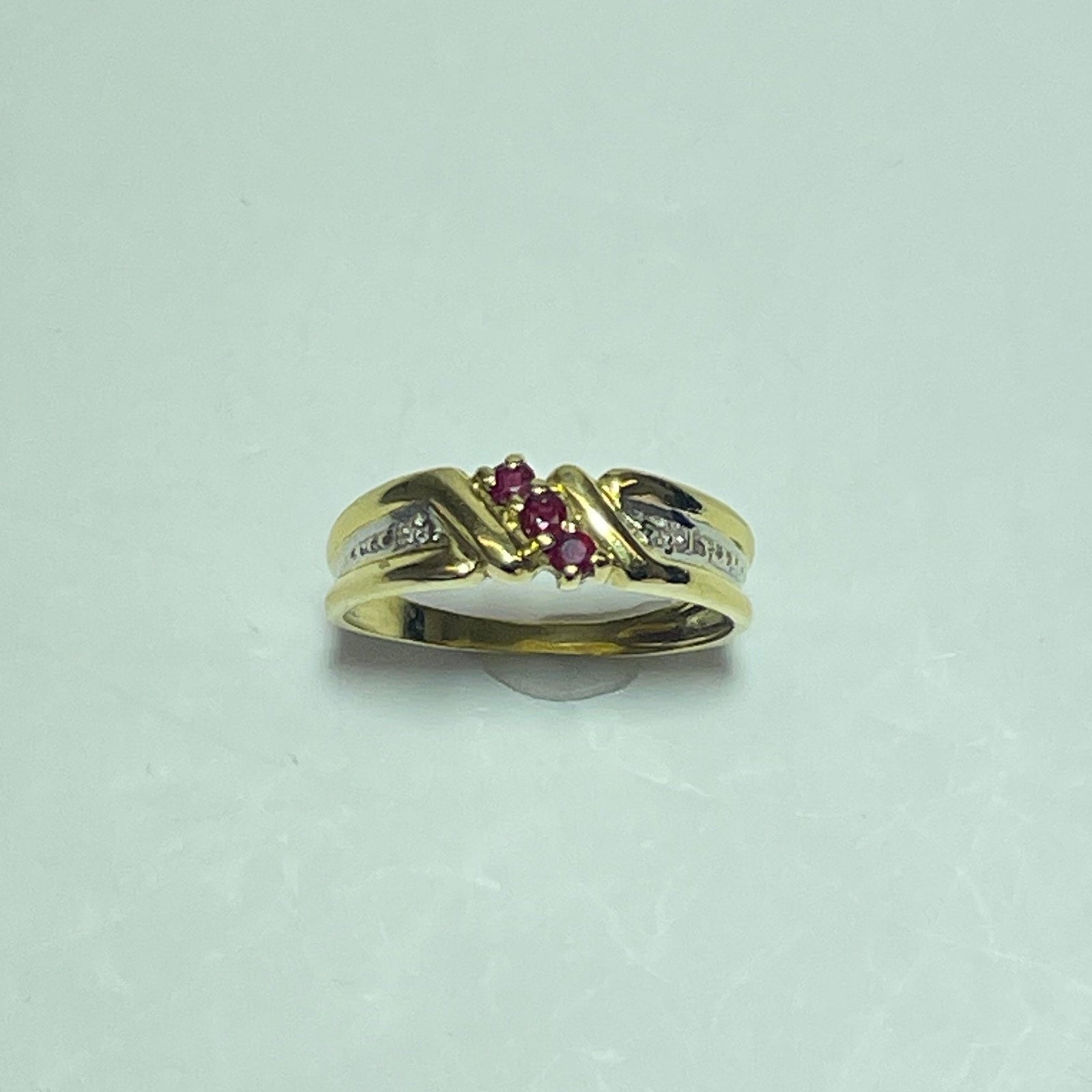 Raffinée et symbolique, cette bague en or jaune 18 carats (750/1000) met en lumière trois petits rubis éclatants, pierres précieuses synonymes de passion, d’énergie et de protection. Leur éclat rouge profond est sublimé par un sertissage soigné et un design élégant qui épouse parfaitement la forme du doigt.
