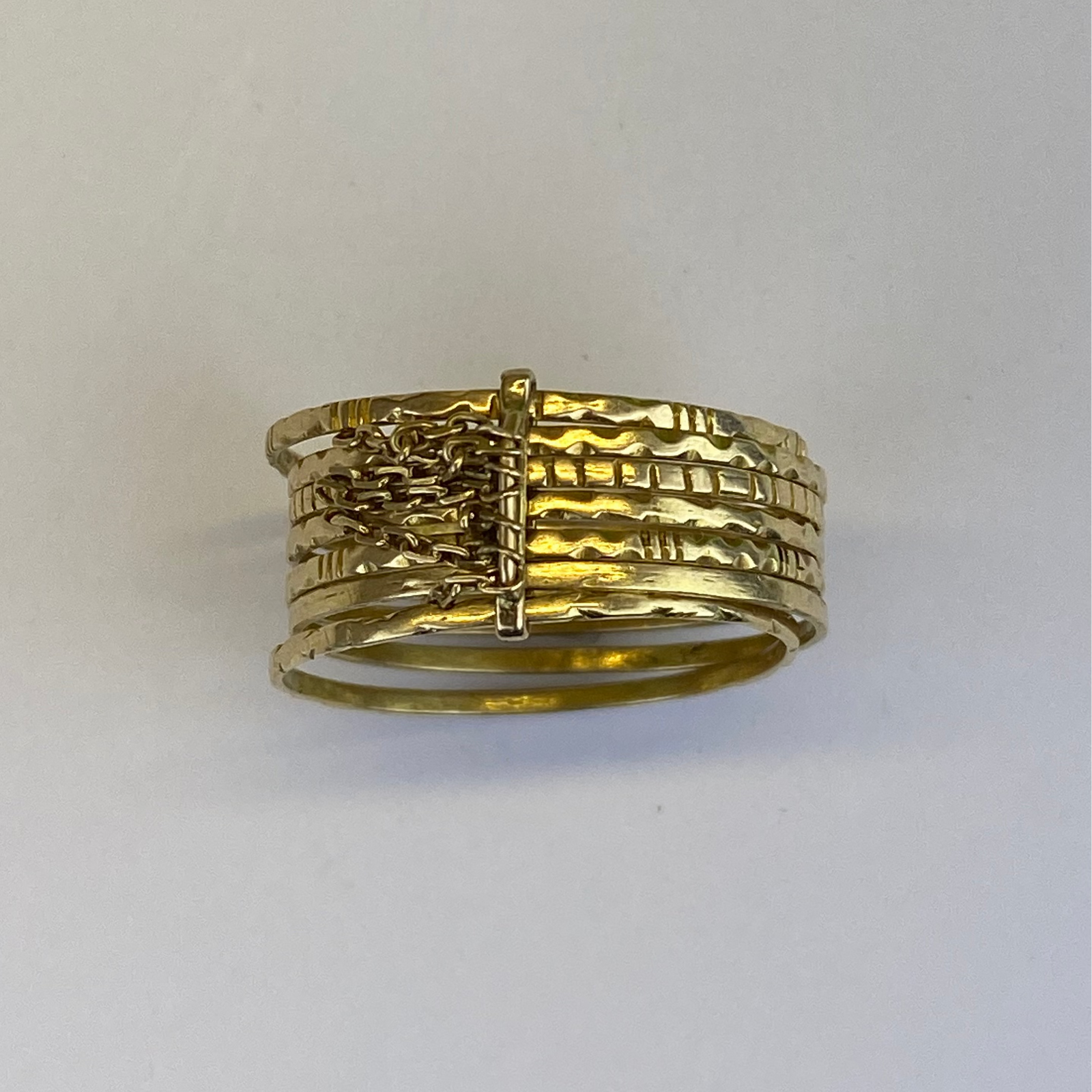 Affirmez votre style avec ce superbe semainier en or jaune 18 carats (750/1000), composé de sept anneaux martelés symbolisant chaque jour de la semaine. Son design à la fois classique et contemporain reflète la richesse du savoir-faire joaillier français, tandis que la texture martelée joue magnifiquement avec la lumière.