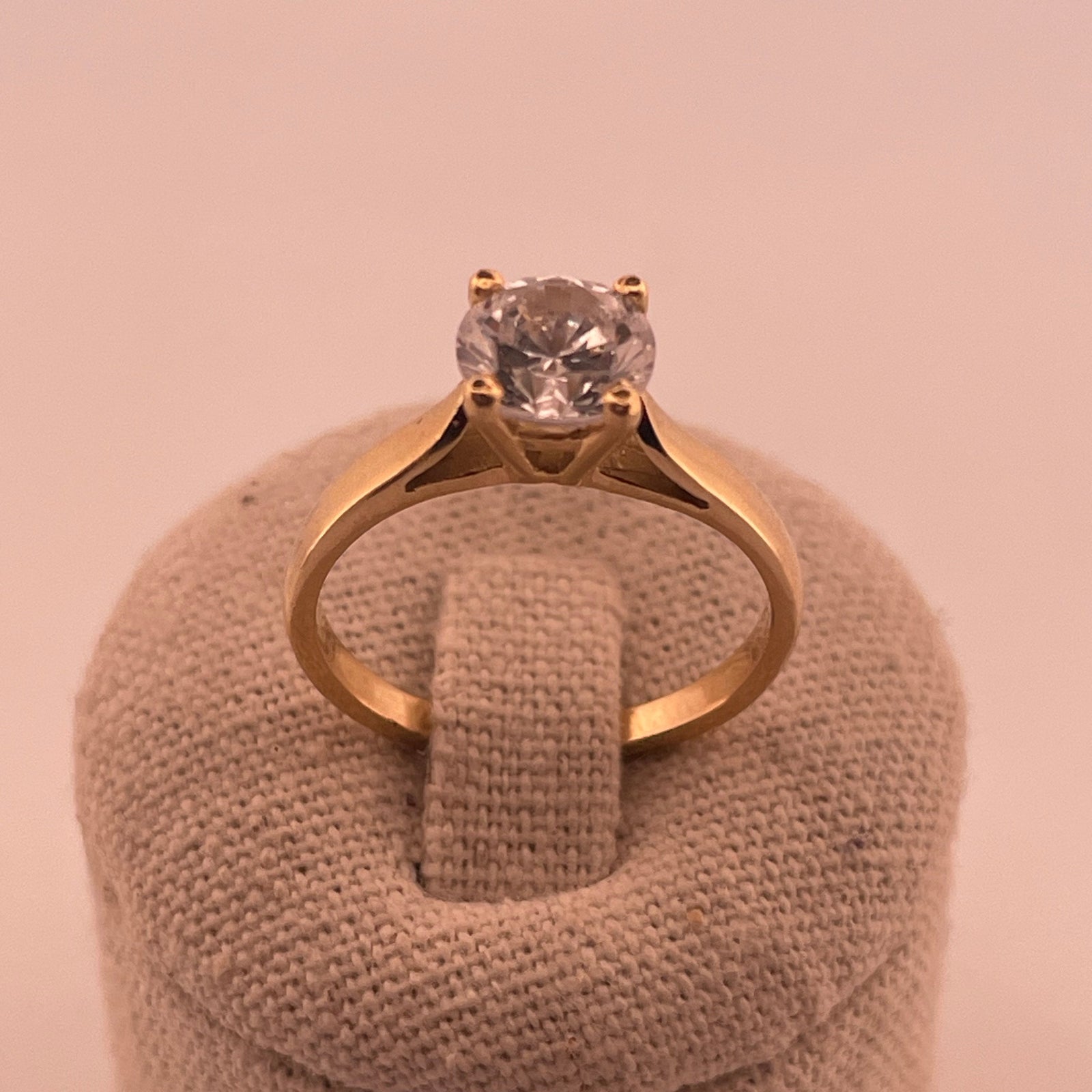Élégante et intemporelle, cette bague solitaire en or jaune 18 carats (750/1000) est sublimée par un strass, serti à quatre griffes. Son design épuré met en valeur toute la beauté et la lumière de la pierre, symbole d’éternité et de raffinement.
