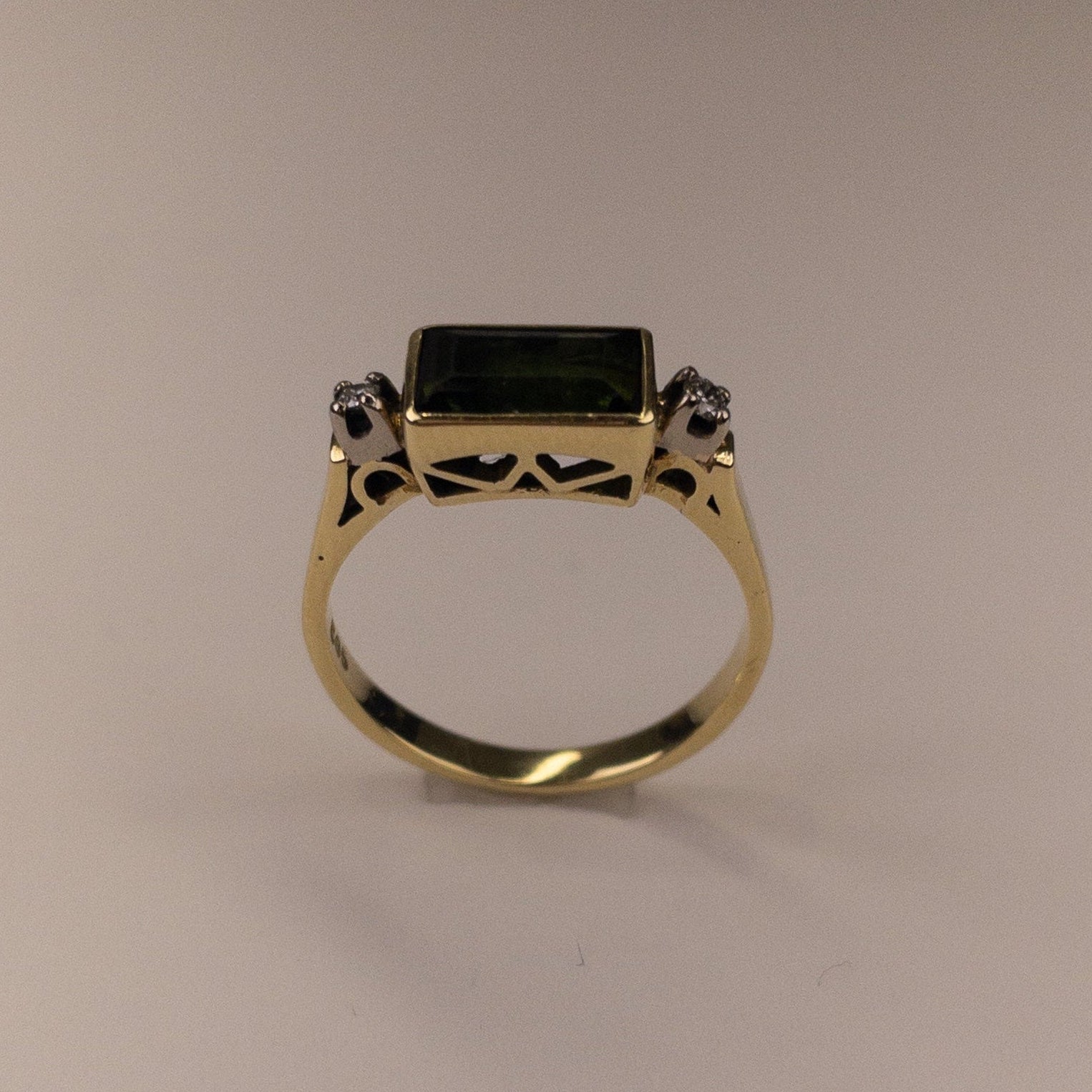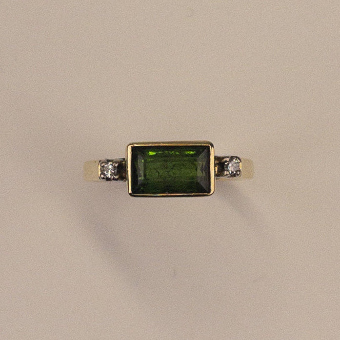 La tourmaline verte séduit par ses nuances élégantes et son caractère apaisant. Associée à une monture ajourée en or jaune, elle compose une bague féminine, moderne et intemporelle — idéale comme pièce signature au quotidien ou comme cadeau raffiné.