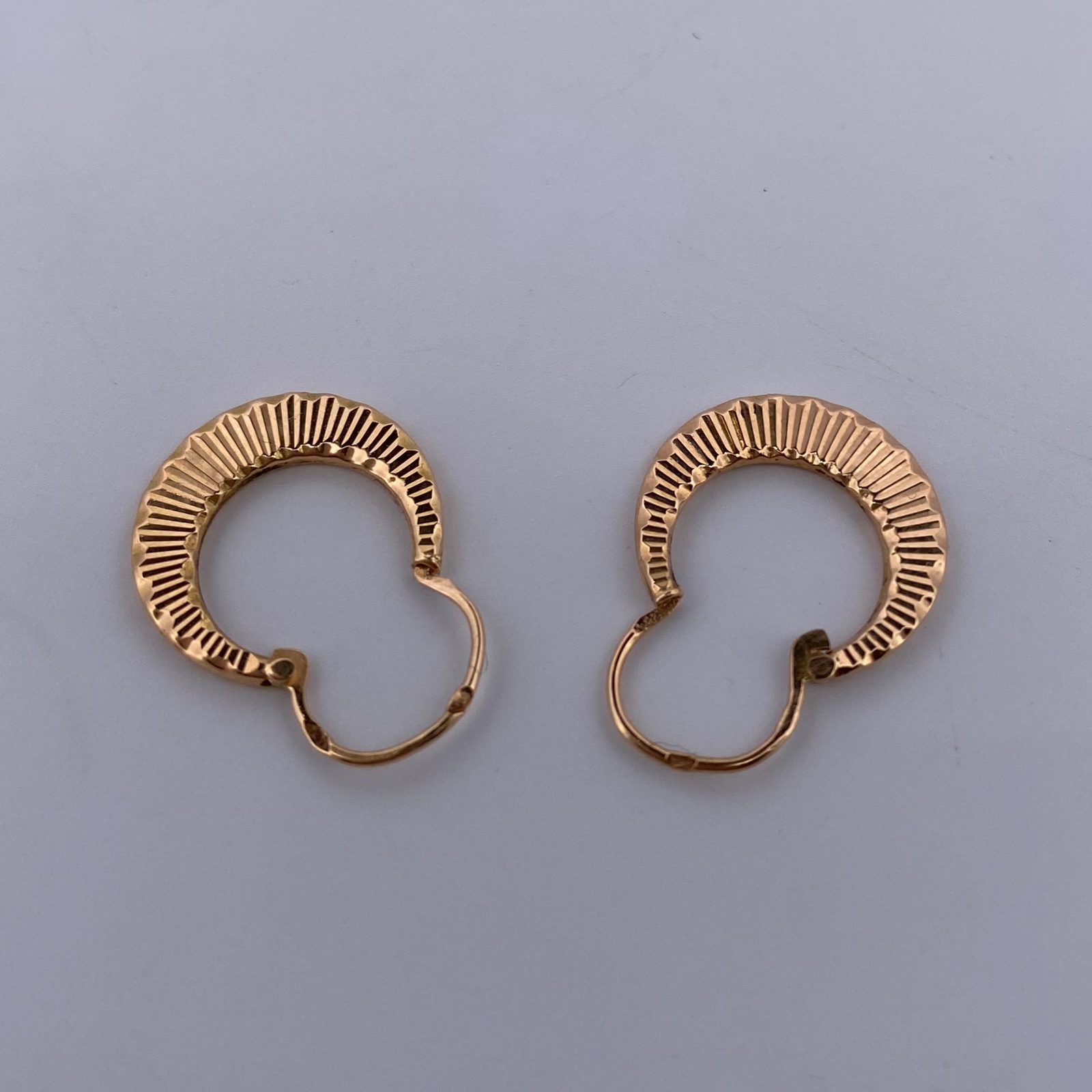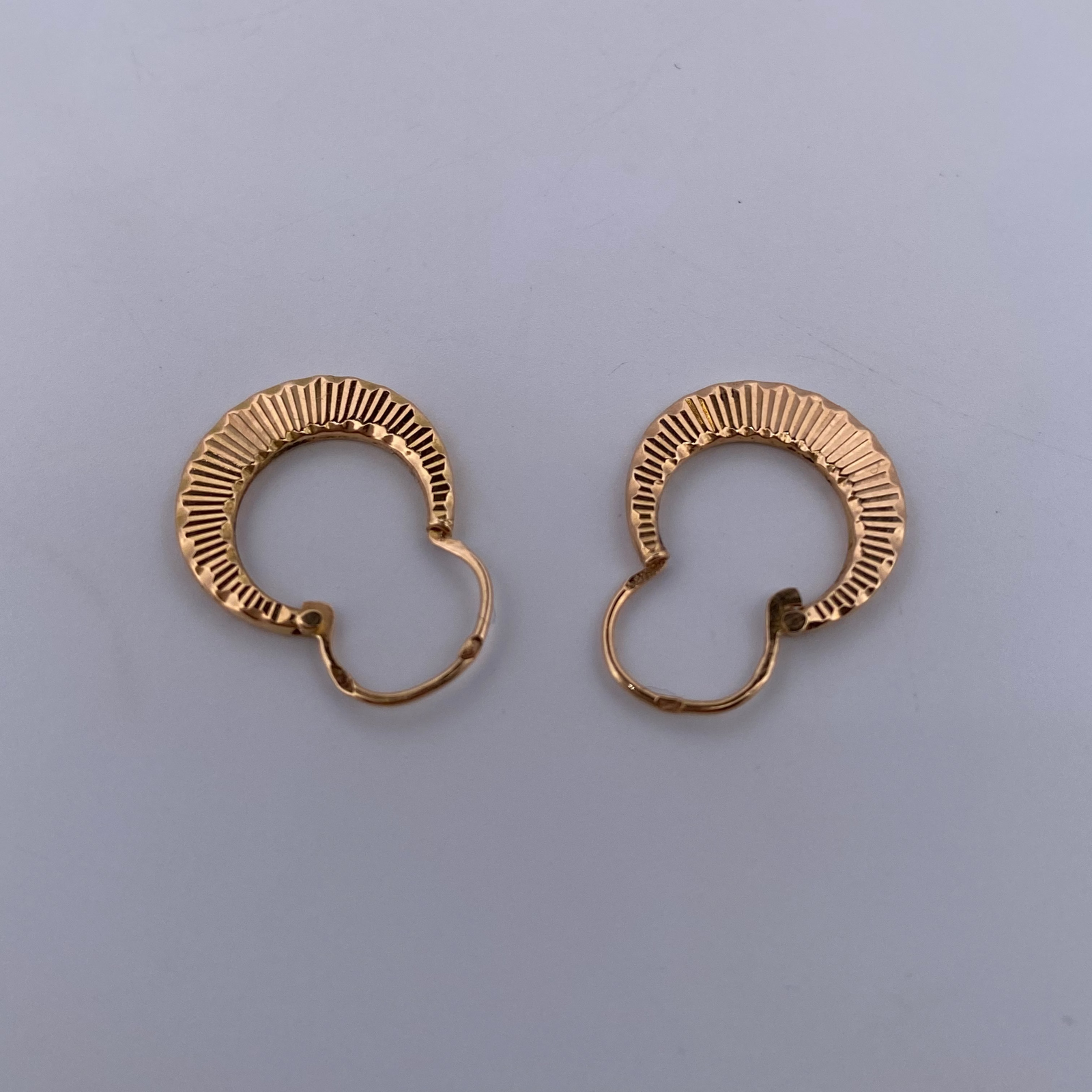 Une paire de boucles d’oreilles légères et élégantes en or jaune 18 carats (750/1000), d’un poids total de 1,14 g. Leur design finement travaillé en forme de cercle texturé apporte une touche délicate et lumineuse, idéale pour un porté quotidien.