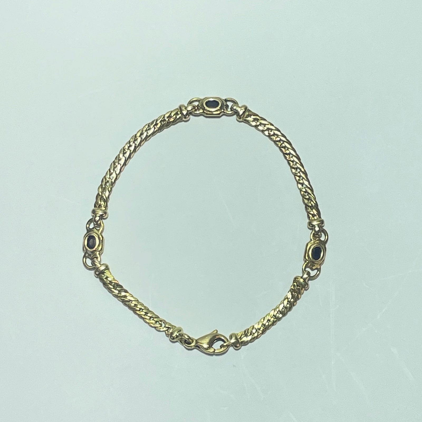 Affirmez votre élégance avec ce bracelet en or jaune 18 carats (750/1000) orné de saphirs bleus profonds. Ses maillons fins et ses pierres serties en alternance créent un équilibre harmonieux entre éclat doré et nuances bleutées, symbole de raffinement et de confiance.