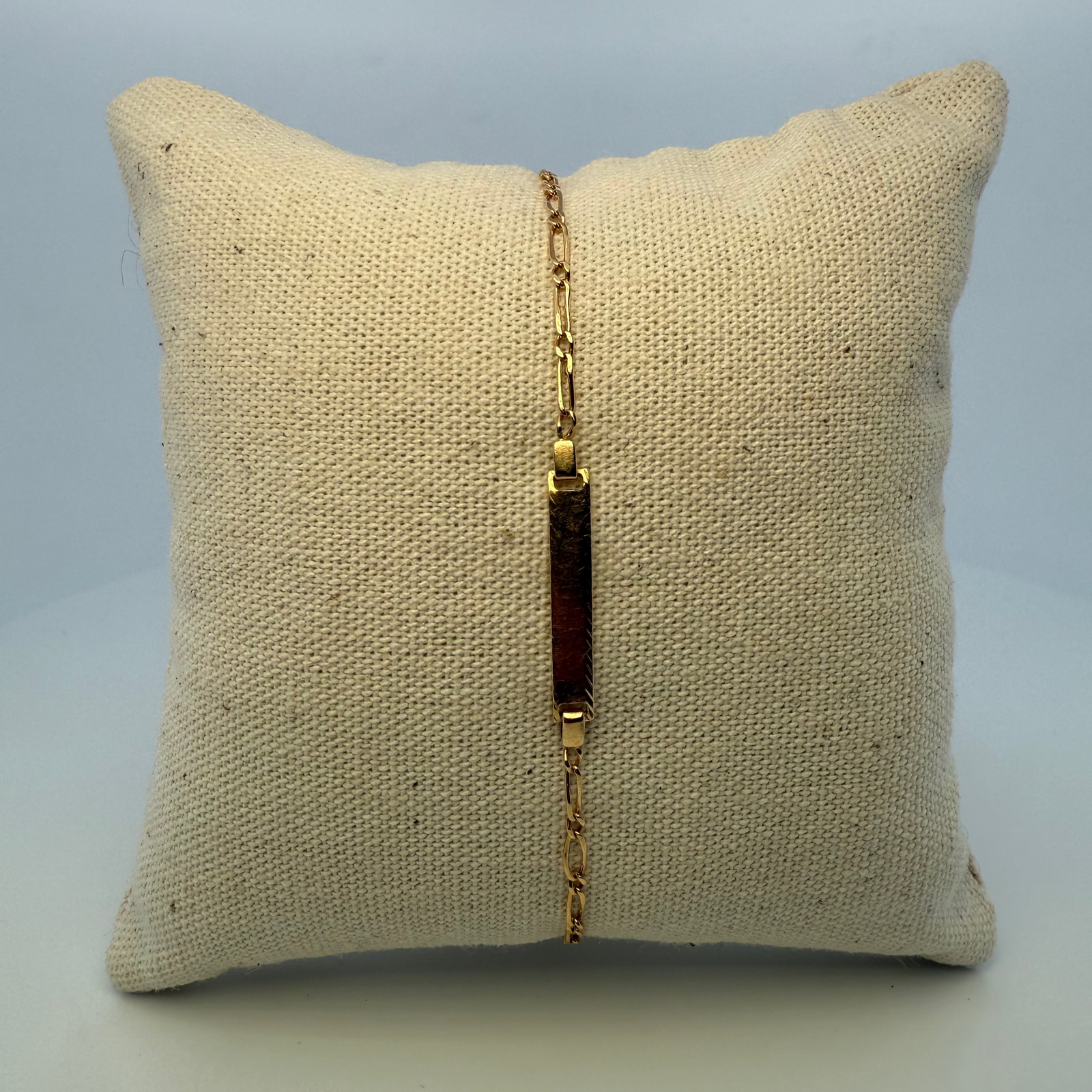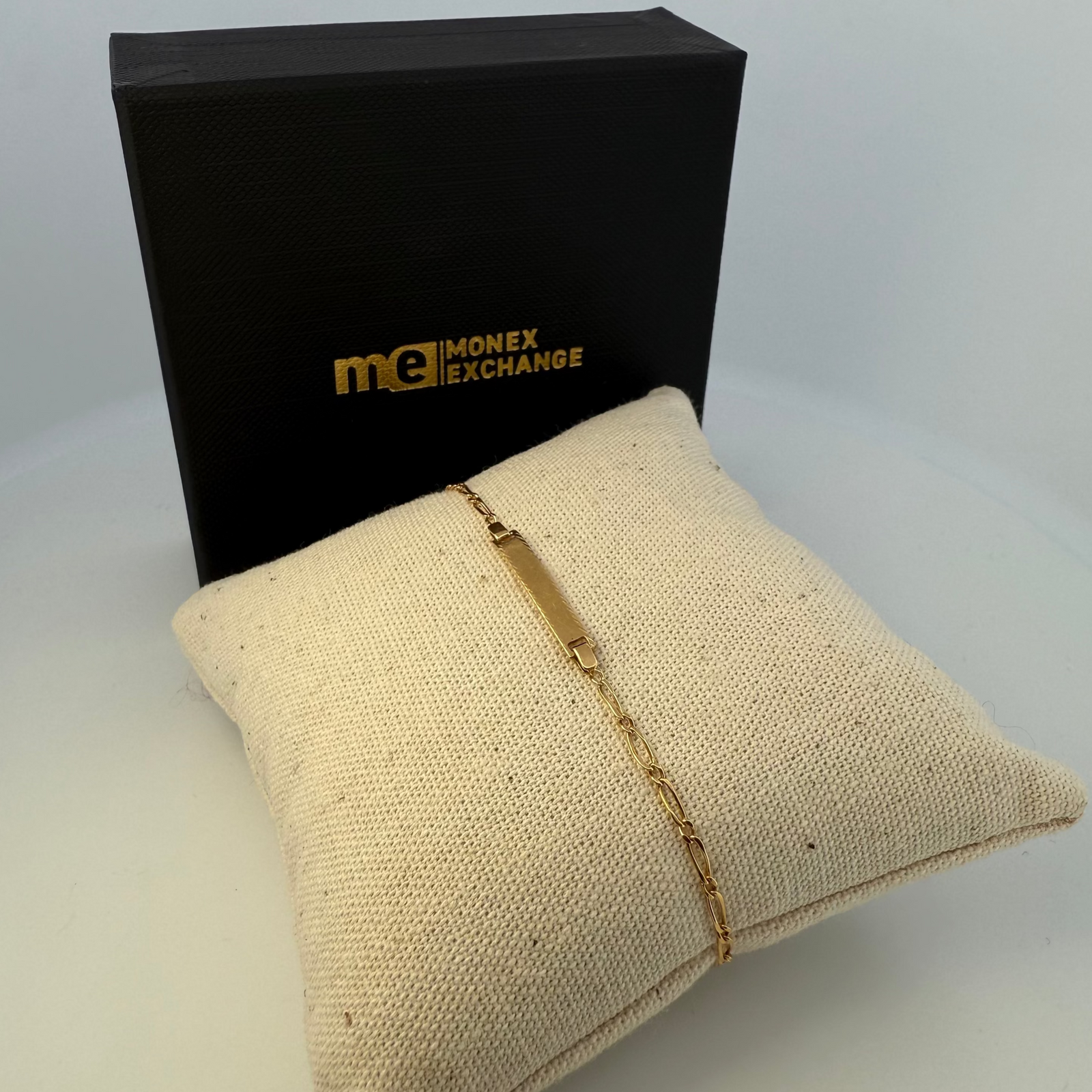 Un bijou fin et élégant, conçu en or jaune 18 carats (750/1000), orné d’une plaque discrète et raffinée. Grâce à son design classique et intemporel, ce bracelet est idéal pour être offert lors d’occasions symboliques : baptême, anniversaire, communion ou cadeau précieux à conserver toute une vie.