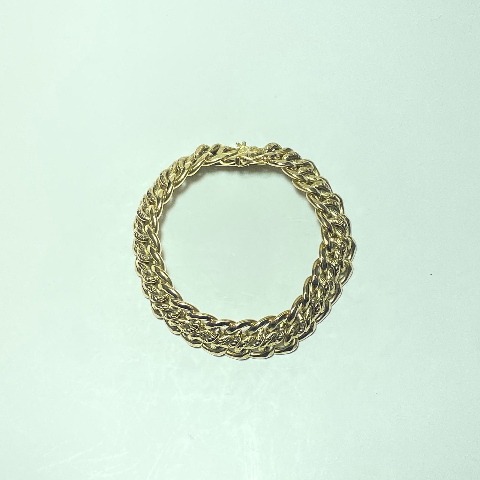 Avec un poids conséquent de 32,63 grammes, ce bracelet incarne un véritable bijou de caractère, idéal pour les amateurs de pièces en or massif. Son éclat chaud et sa structure régulière en font un bijou aussi élégant porté seul que combiné avec une montre ou d’autres bracelets.