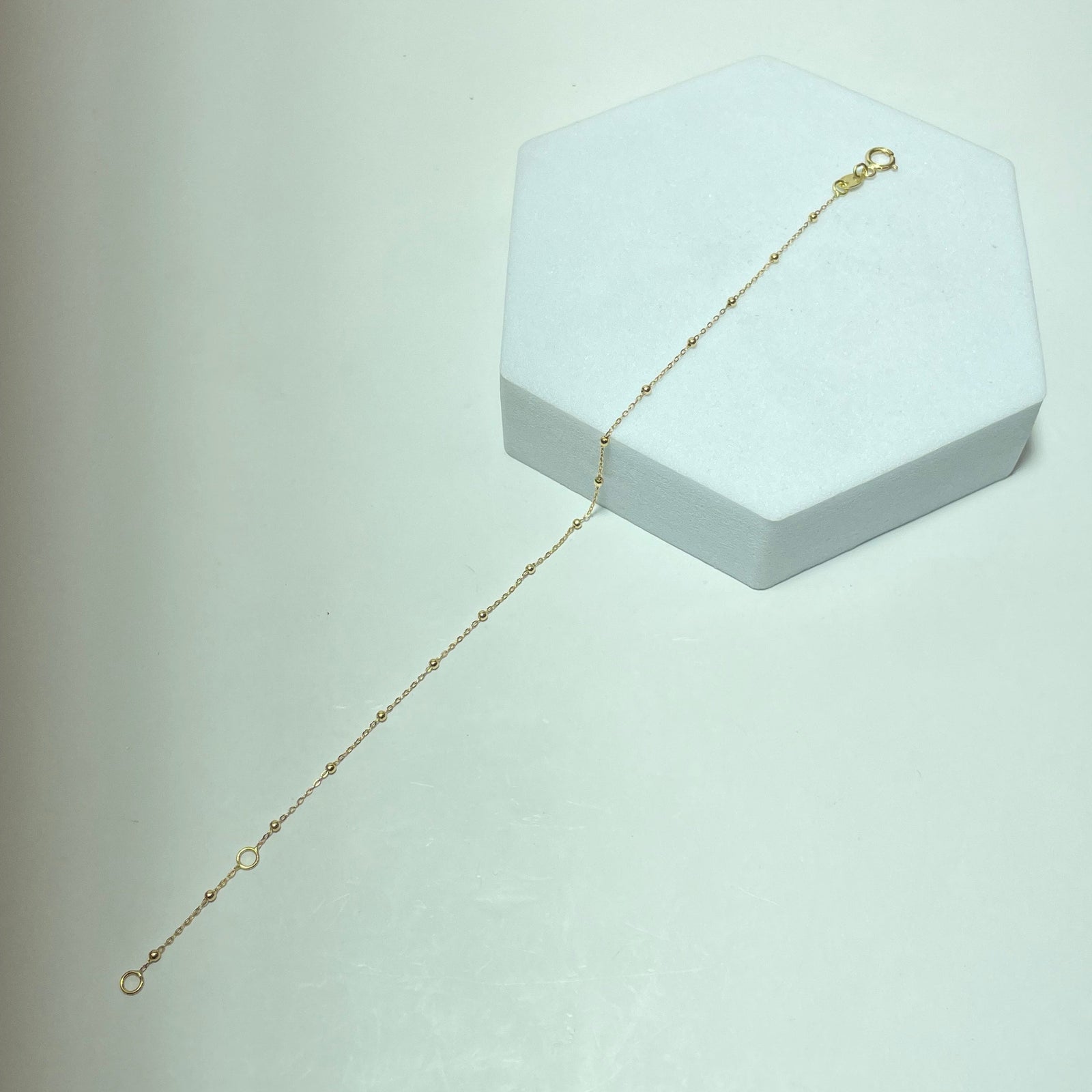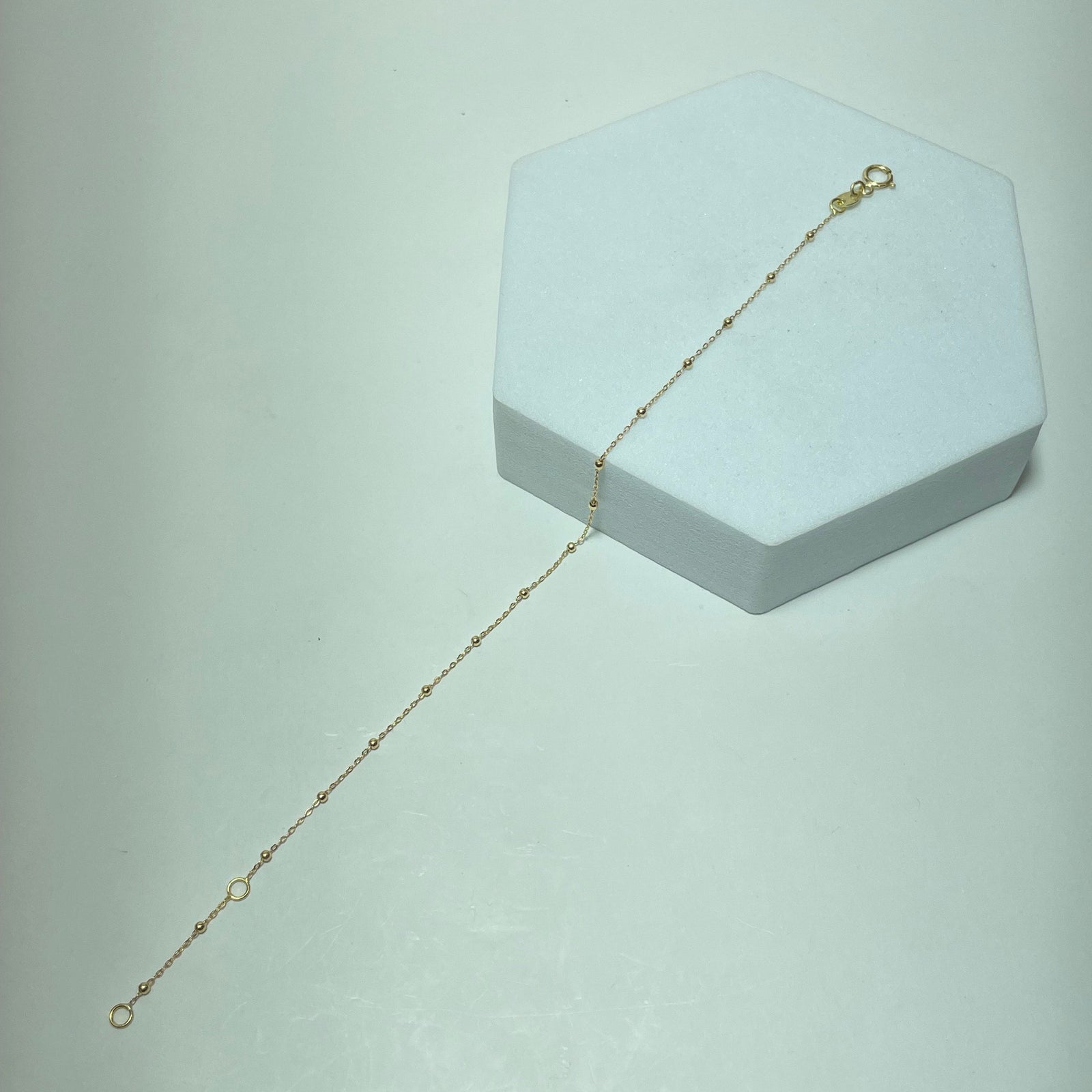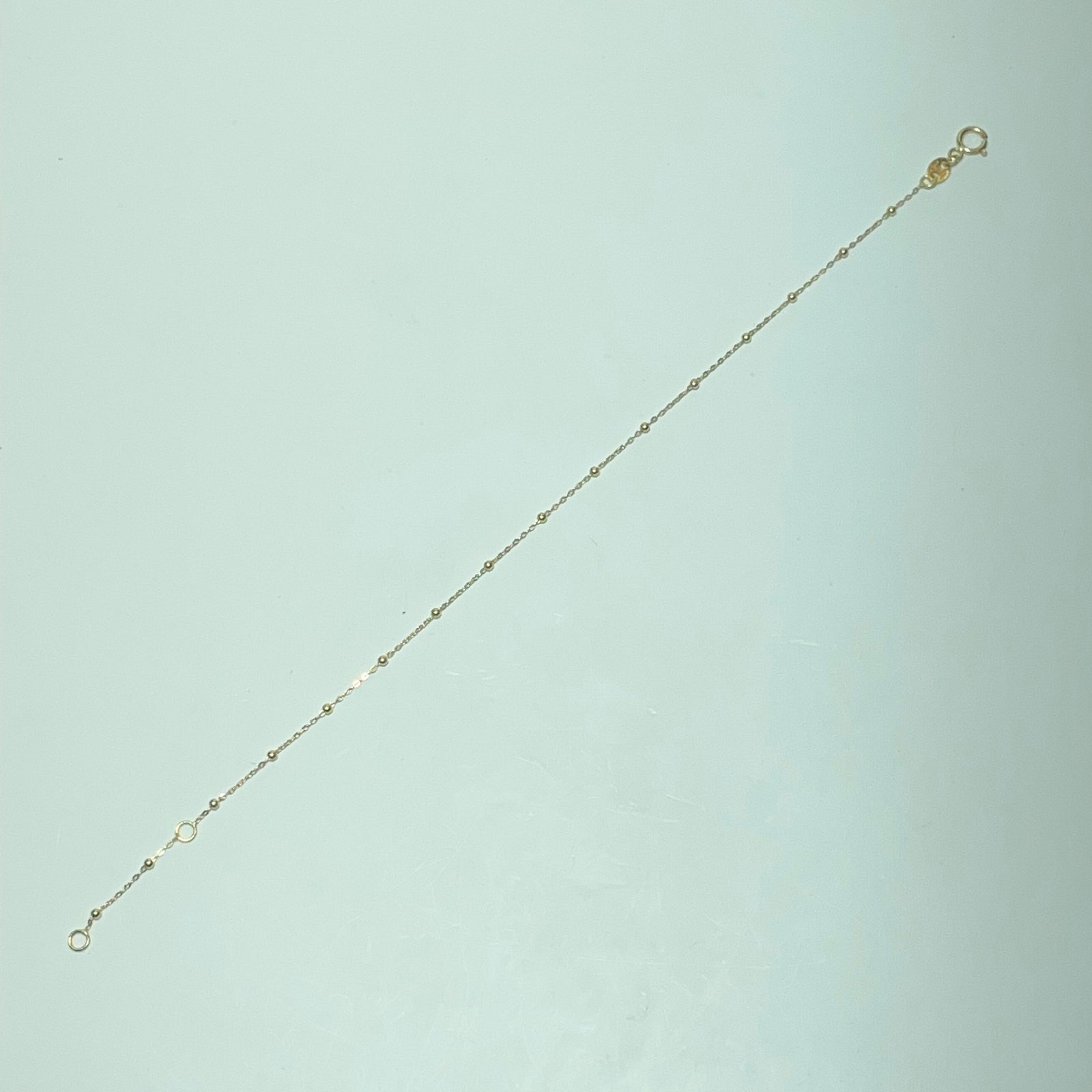 D’une grande finesse et d’une élégance discrète, ce bracelet en or 18 carats séduit par son design minimaliste et intemporel. Réalisé en or jaune 750/1000, il est composé d’une chaîne fine ponctuée de petites billes, apportant une touche subtile de lumière au poignet.
