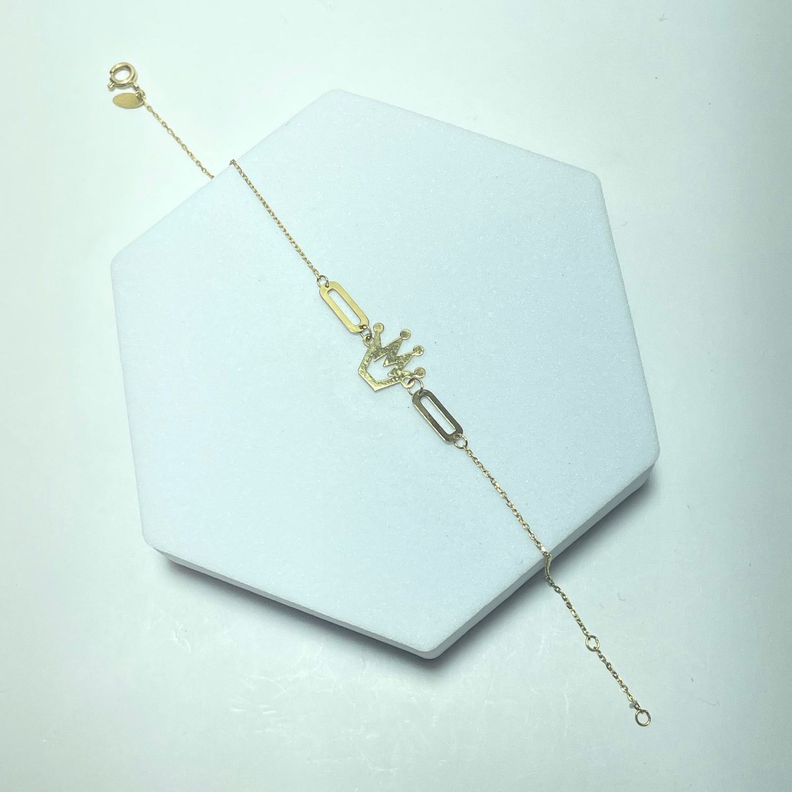 Ce bracelet est le bijou idéal pour apporter une touche subtile et élégante à votre poignet. Son motif couronne lui donne une personnalité douce et moderne, parfaite pour un cadeau symbolique ou pour compléter un look minimaliste.