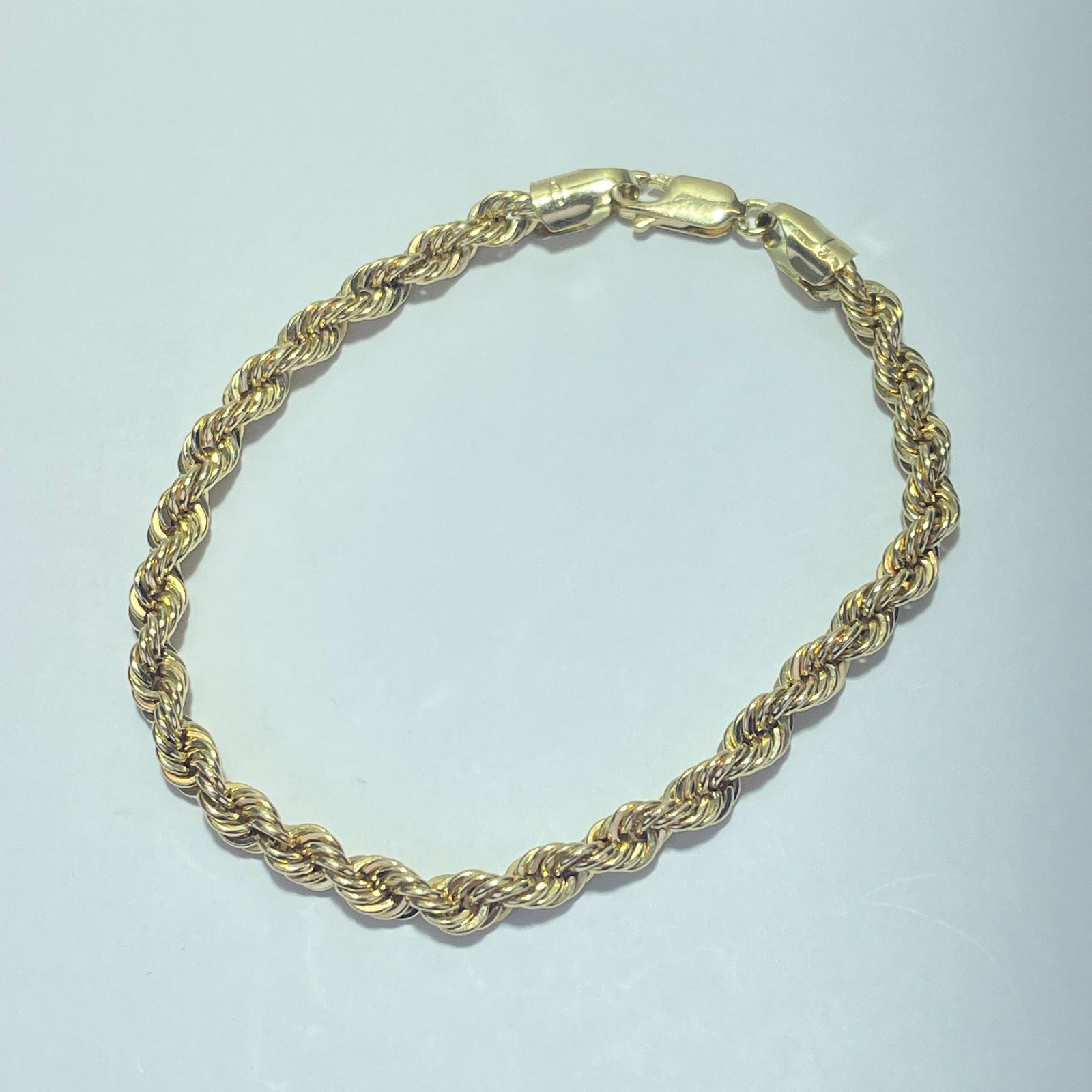 Affirmez votre élégance avec ce bracelet en or jaune 18 carats (750/1000) au design torsadé, symbole de raffinement et de savoir-faire joaillier. Sa maille corde, souple et lumineuse, reflète la lumière à chaque mouvement, créant un éclat subtil et harmonieux.