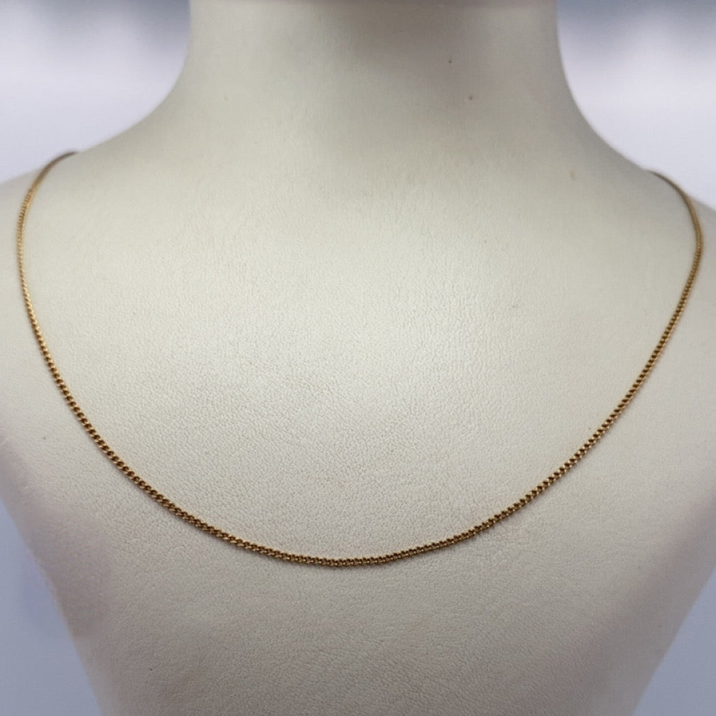 Une chaîne en or sobre et élégante, parfaite comme base pour vos pendentifs ou comme bijou discret à porter au quotidien. Un essentiel intemporel qui conserve toujours sa valeur.