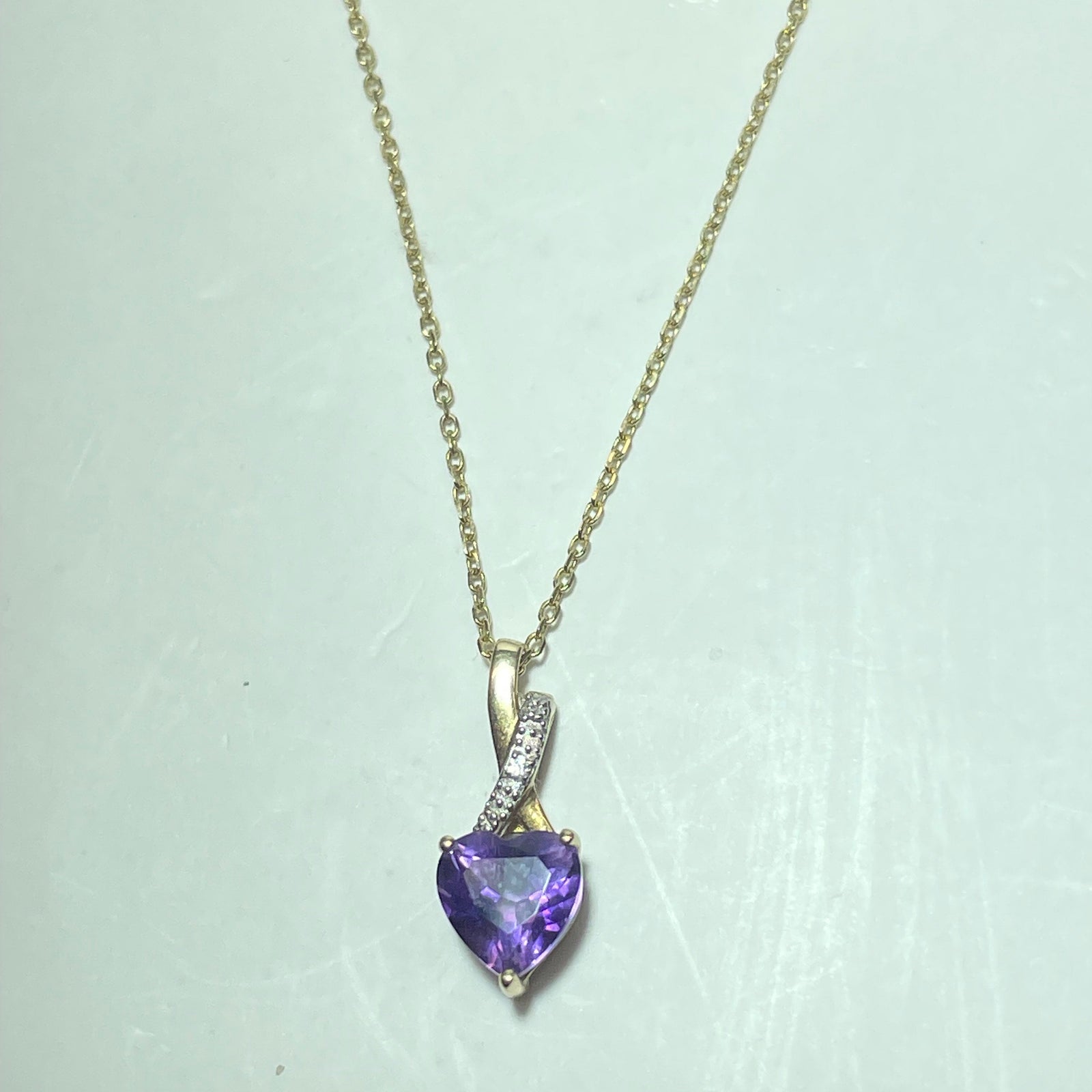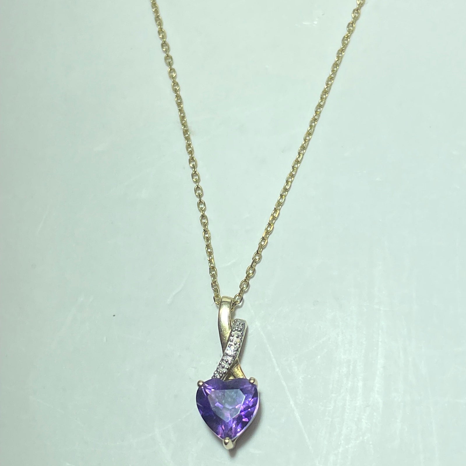 Ce collier en or 9 carats se distingue par son pendentif délicat serti d’une pierre violette, apportant une touche de couleur élégante et lumineuse. Son design fin et épuré en fait un bijou discret, féminin et facile à porter, idéal au quotidien comme pour une occasion spéciale.