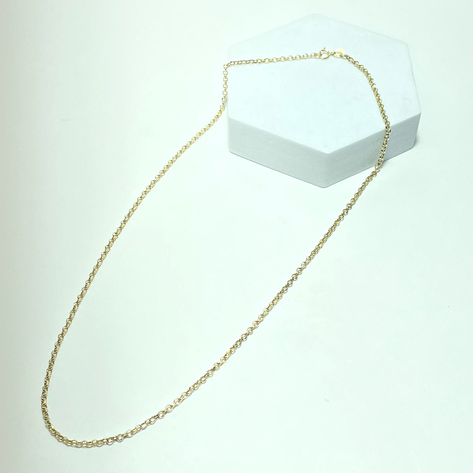 Ce collier en or jaune 18 carats (750/1000) séduit par sa maille fine et régulière, offrant un rendu à la fois élégant, discret et intemporel. Sa ligne épurée en fait un bijou facile à porter au quotidien, seul pour un style minimaliste ou accompagné d’un pendentif.