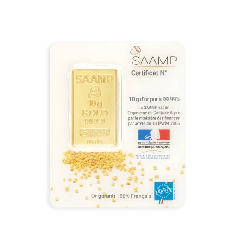 Le lingotin SAAMP 10 g (999,9 ‰) est le format idéal pour débuter un investissement dans l’or. À la fois accessible, compact et facilement revendable, il combine valeur réelle et liquidité optimale.