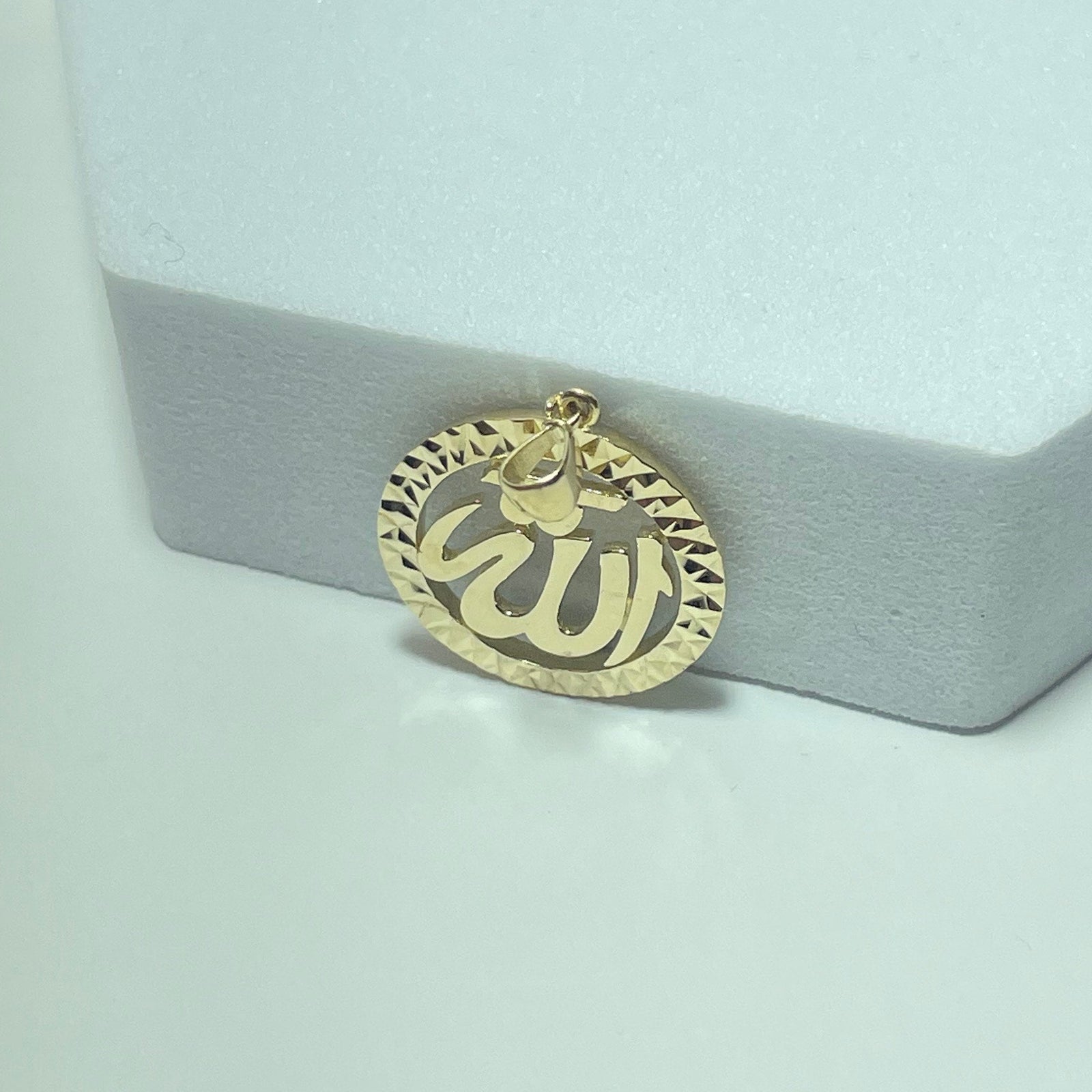 Sublimez votre style avec ce pendentif “Allah” en or jaune 14 carats (585/1000), un bijou chargé de symbolique et de spiritualité. Son motif calligraphié, finement découpé, est mis en valeur par un contour délicatement texturé qui accroche la lumière à chaque mouvement.