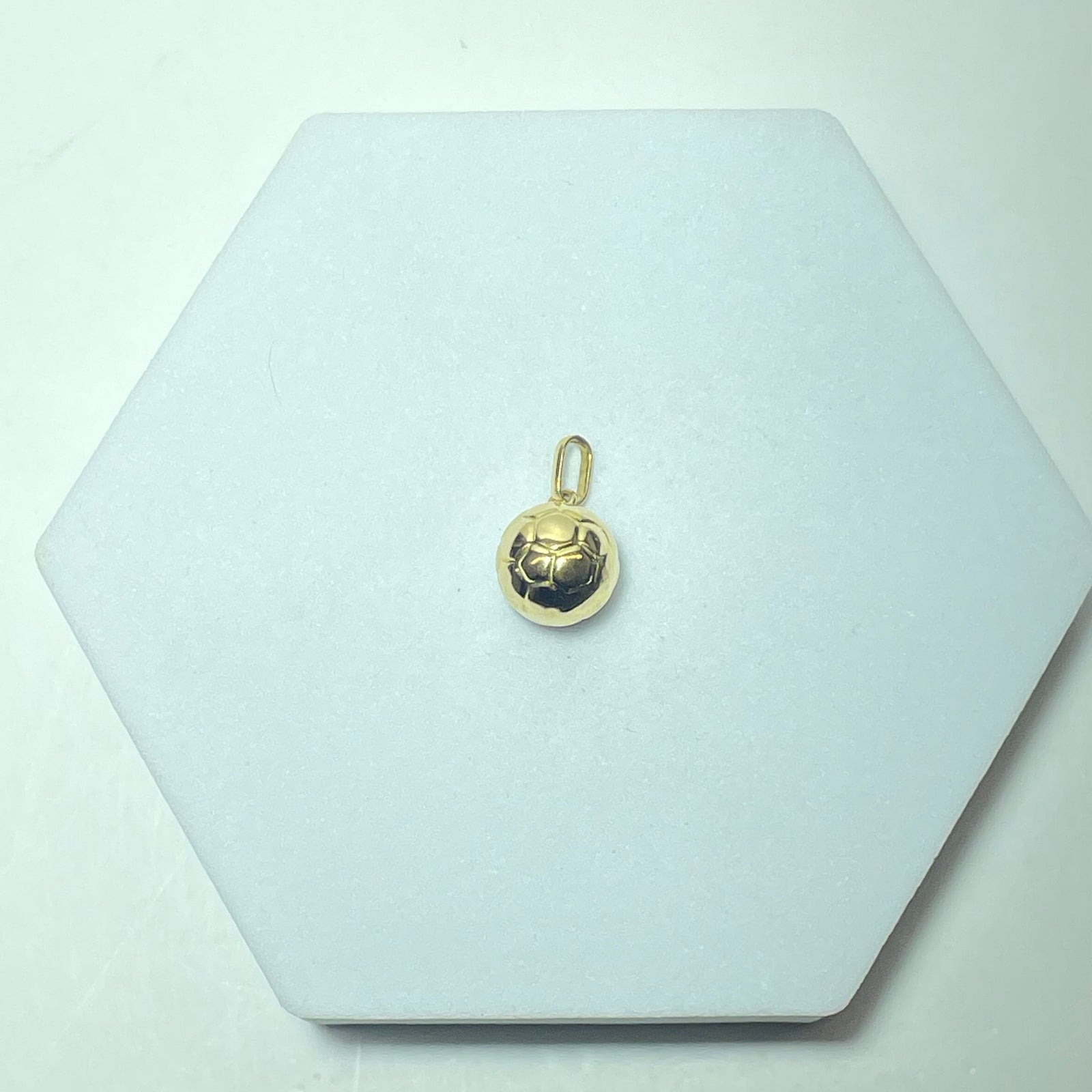 Ce pendentif en or 18 carats représente un ballon finement travaillé, au design arrondi et harmonieux. Son relief délicatement sculpté reproduit les lignes caractéristiques d’un ballon classique, tout en conservant une finition polie miroir qui capte subtilement la lumière.