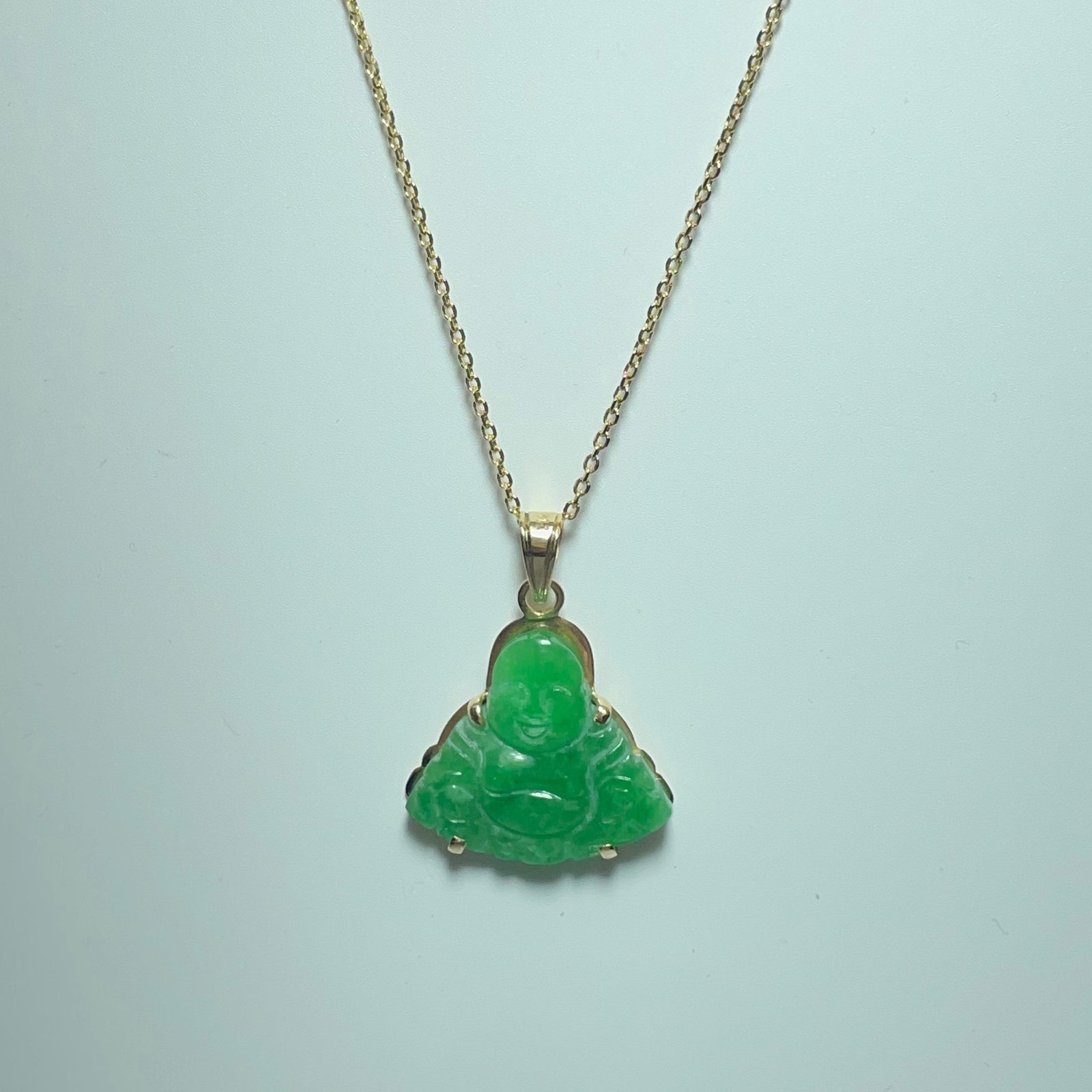 Un pendentif unique et symbolique en or jaune 14 carats (585/1000), orné d’une pierre verte sculptée en forme de Boudha rieur. Symbole universel de joie, de prospérité et de chance, ce bijou allie force spirituelle et élégance intemporelle.