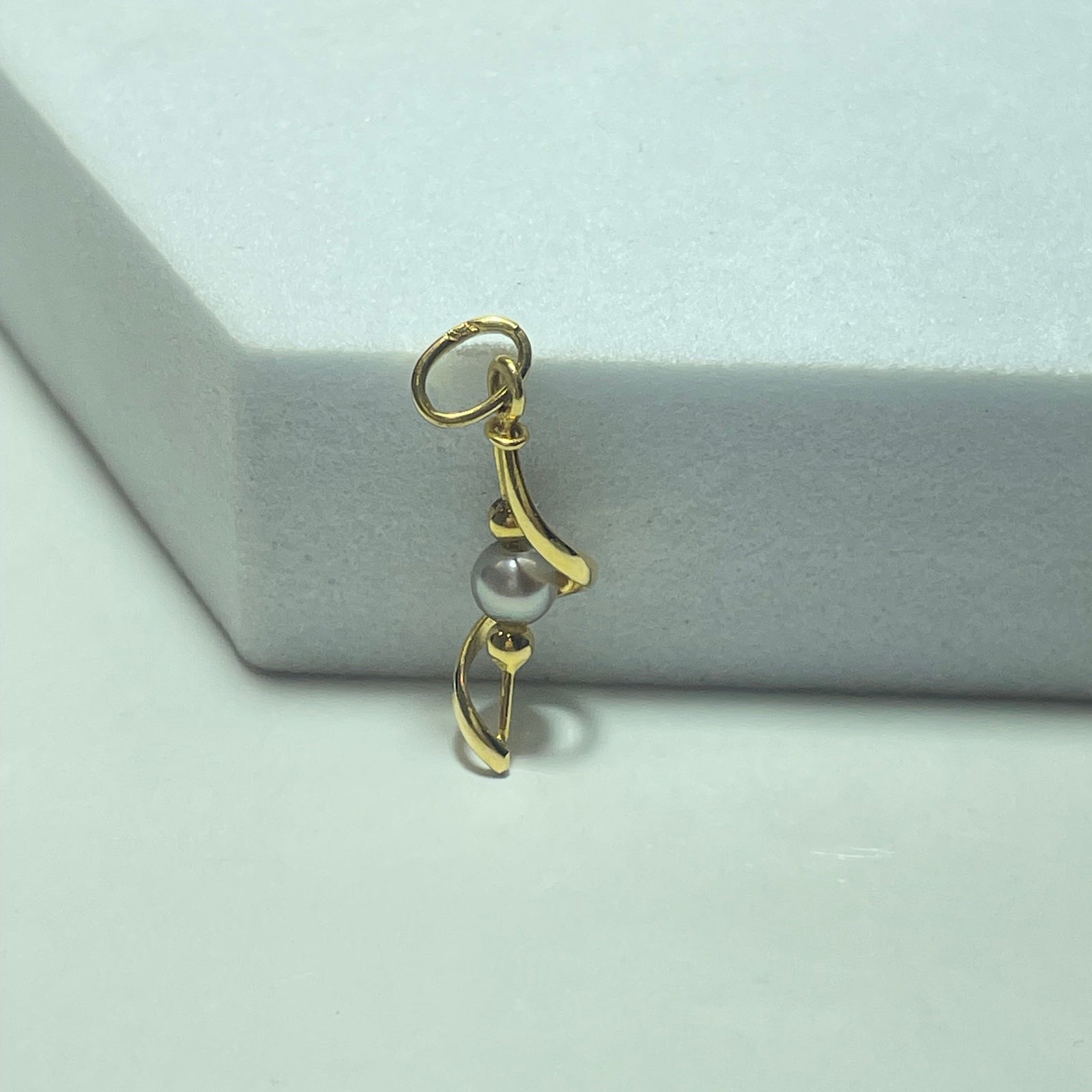 Délicat et raffiné, ce pendentif en or 18 carats séduit par son design fin et élégant. Son motif ajouré encadre harmonieusement une perle centrale, créant un jeu subtil entre courbes dorées et douceur nacrée.